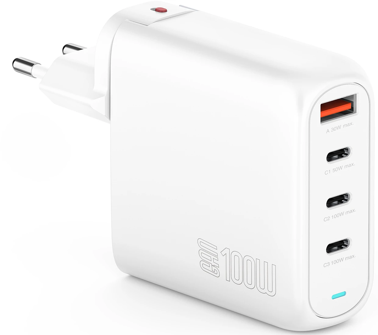 Egal, ob Smartphone, Tablet, Laptop, TWS-Kopfhörer, Powerbank oder Smartwatch – dieses Ladegerät kann alles. Mit 3 USB-C-Ports und 1 USB-A-Anschluss bietet es die Möglichkeit, bis zu vier Geräte gleichzeitig zu laden. Die Gesamtleistung von 100W sorgt dafür, dass selbst leistungshungrige Geräte wie Laptops schnell aufgeladen werden, während kleinere Gadgets sicher und effizient mit Energie versorgt werden.